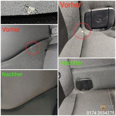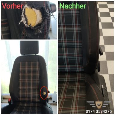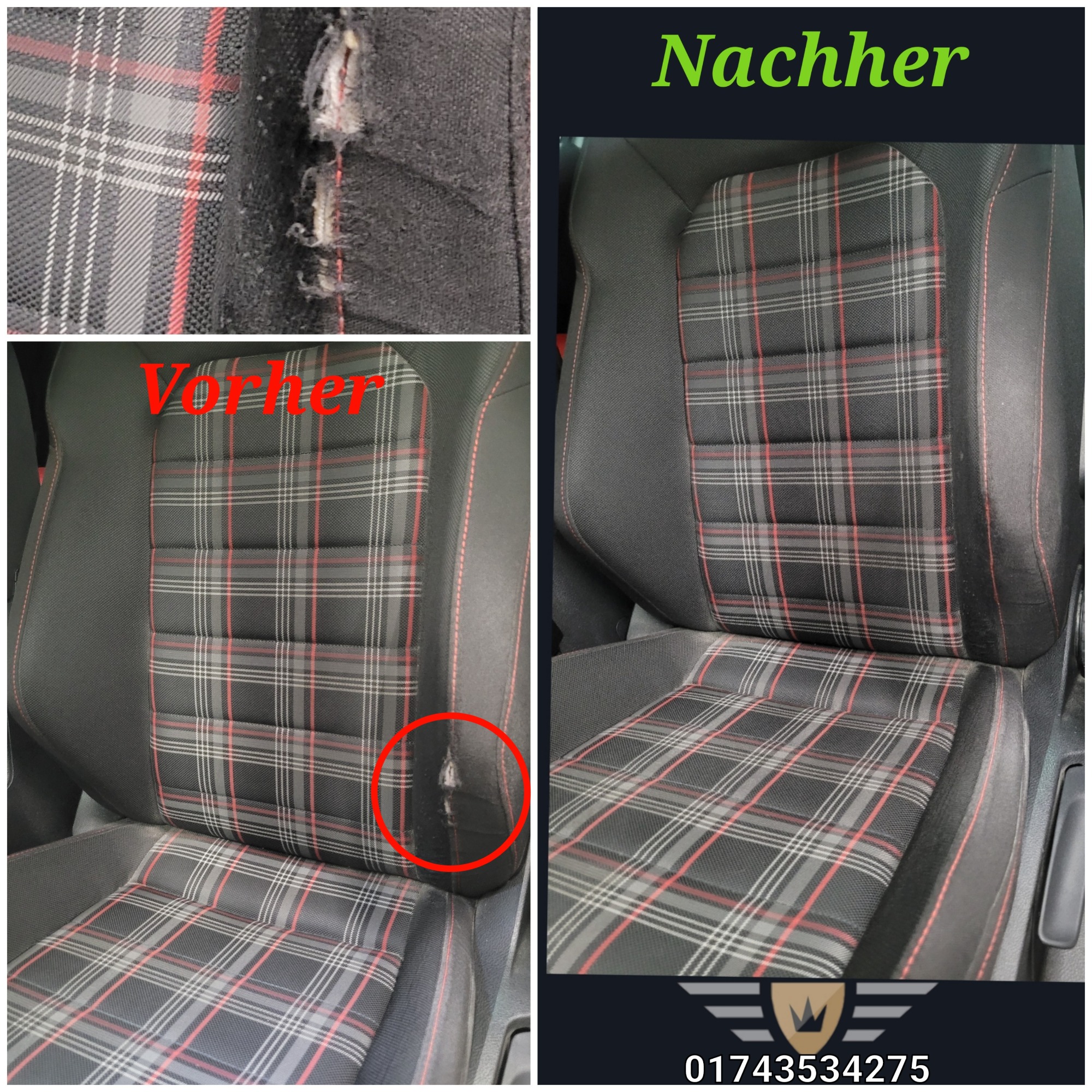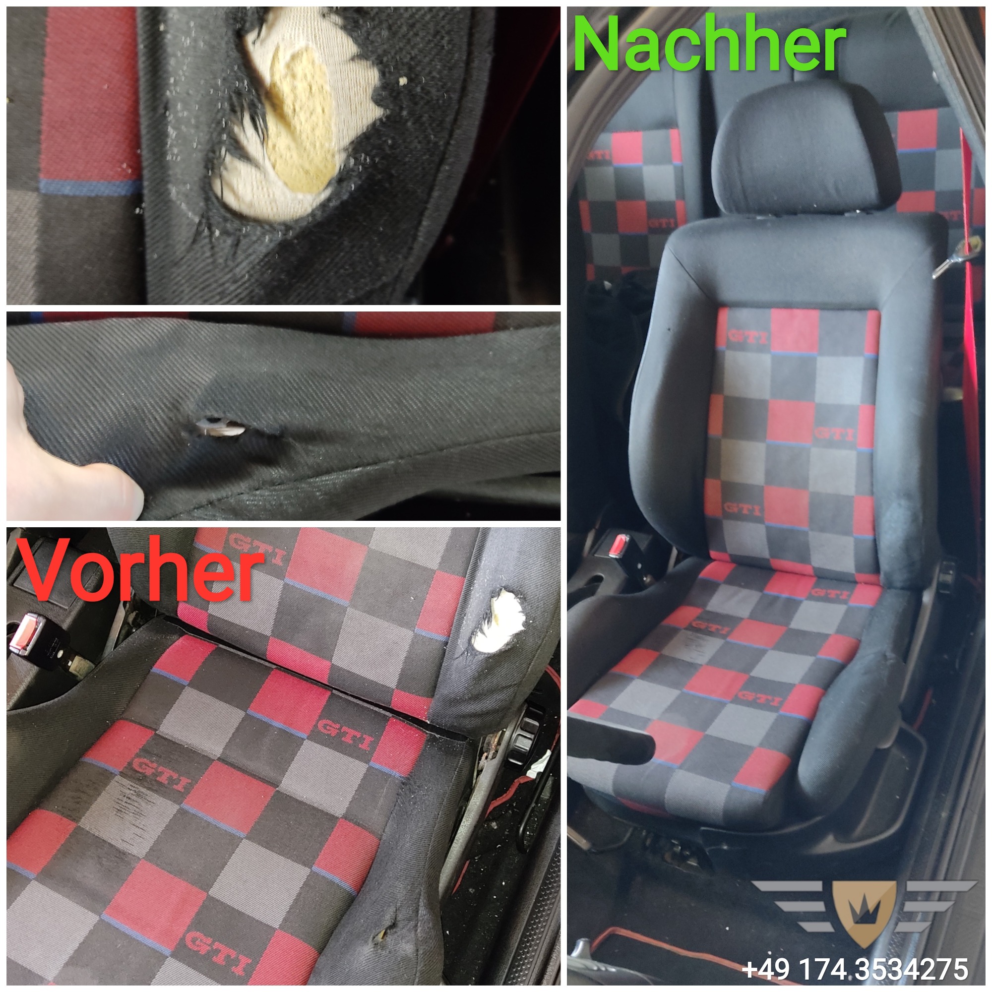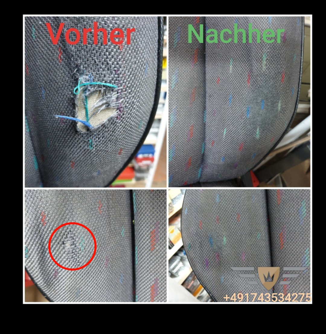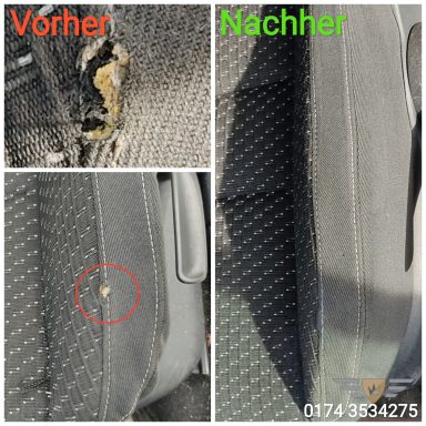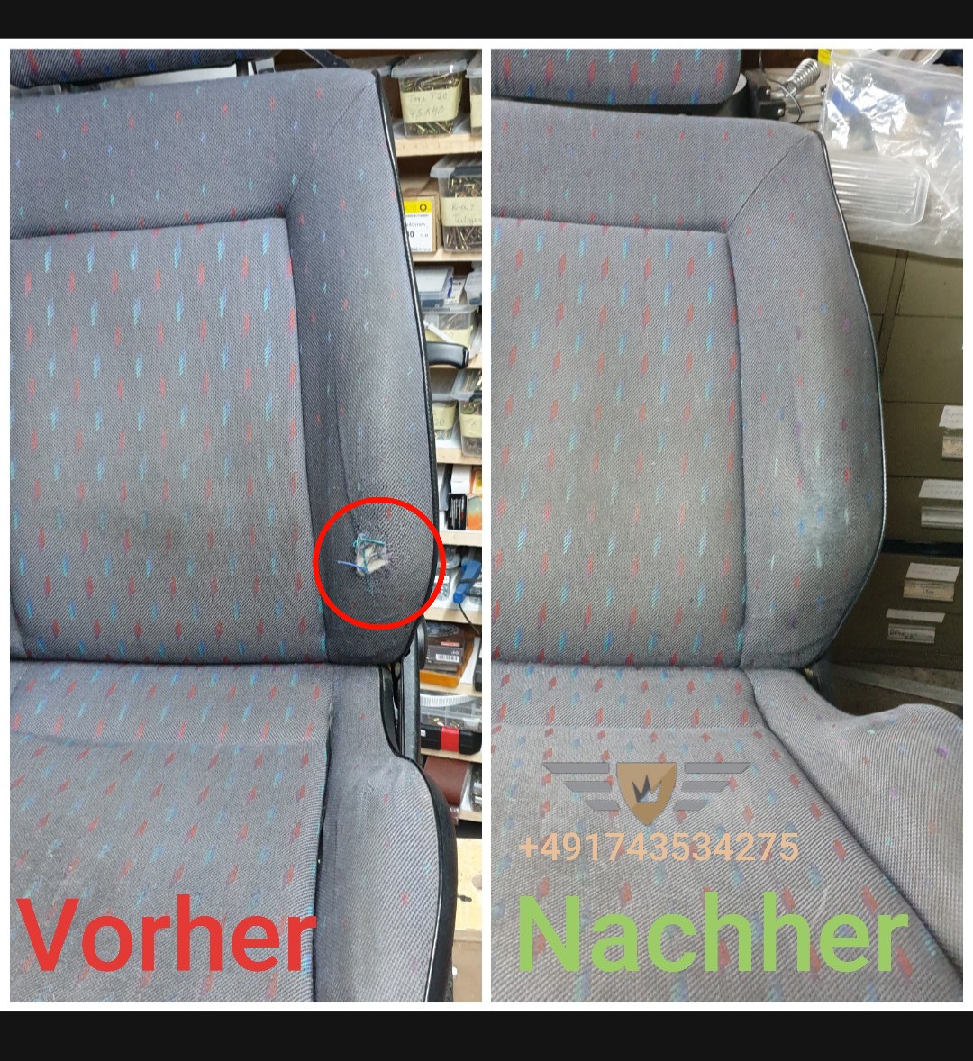 Galerie Reparaturen von Brandlöchern und Sitzwangen an PKW-Stoffsitzen