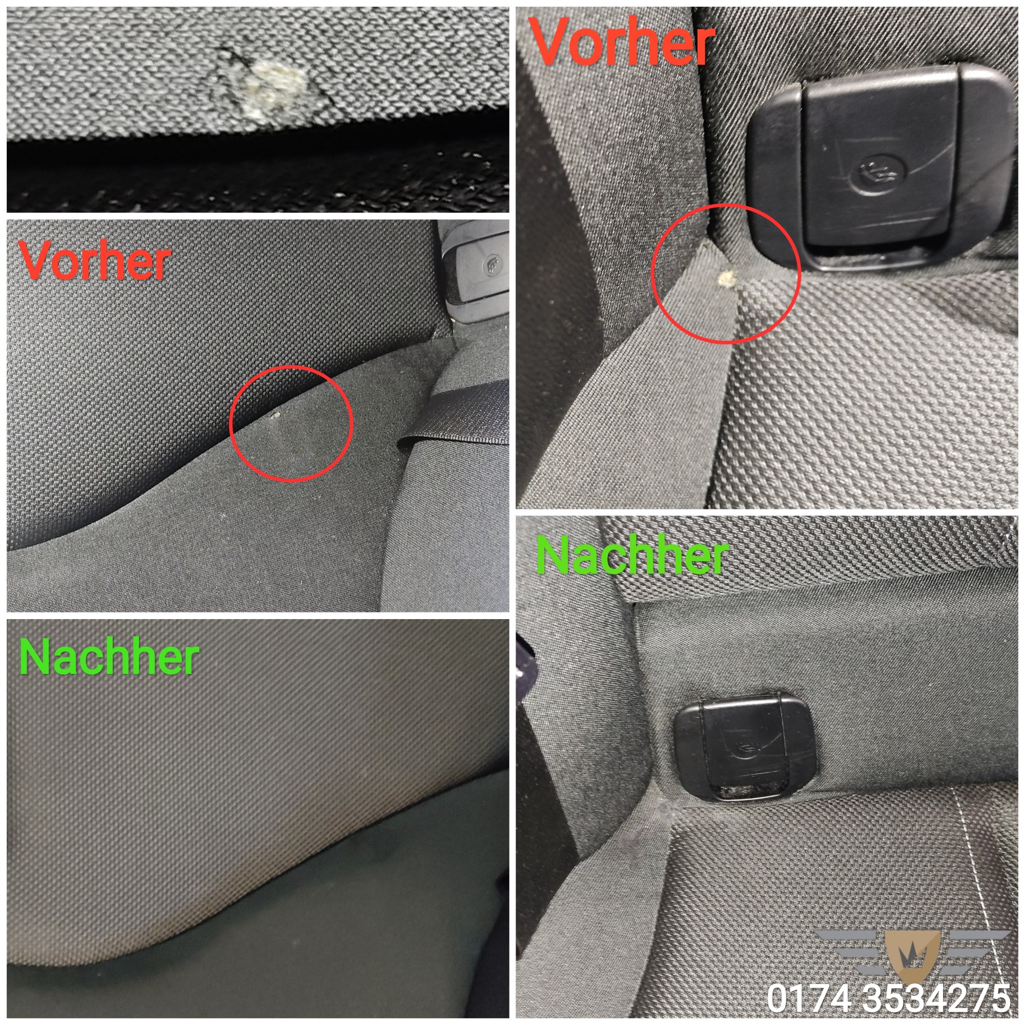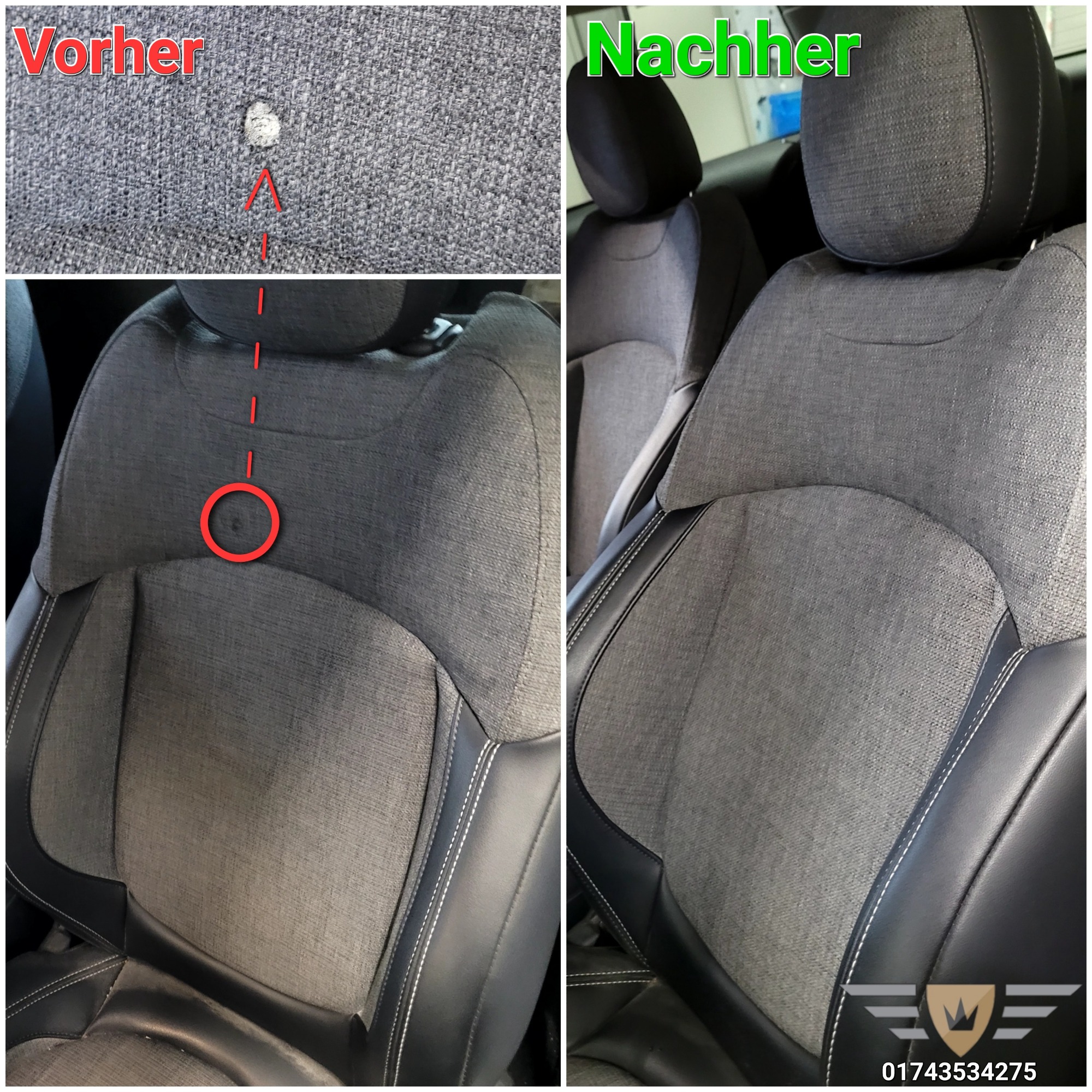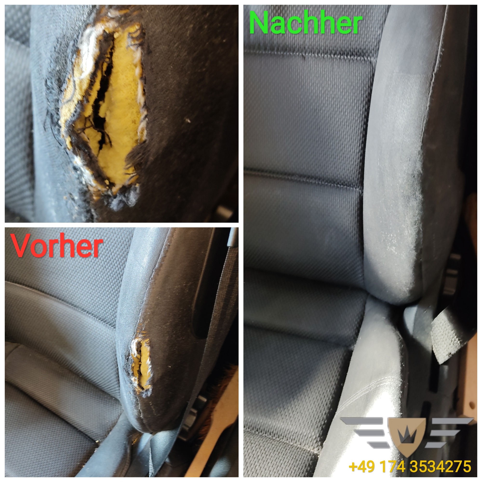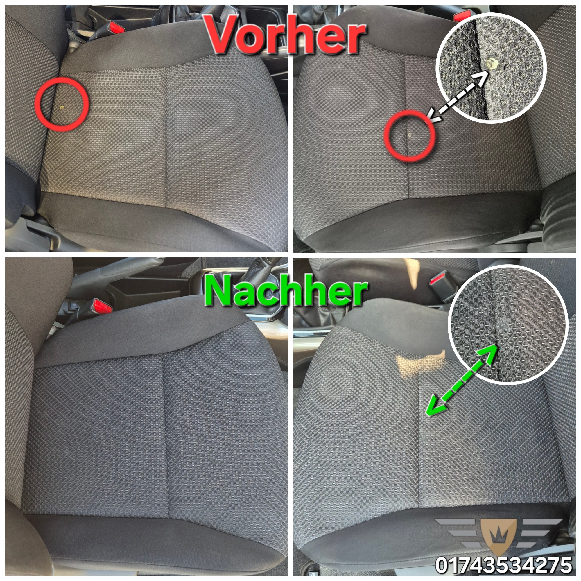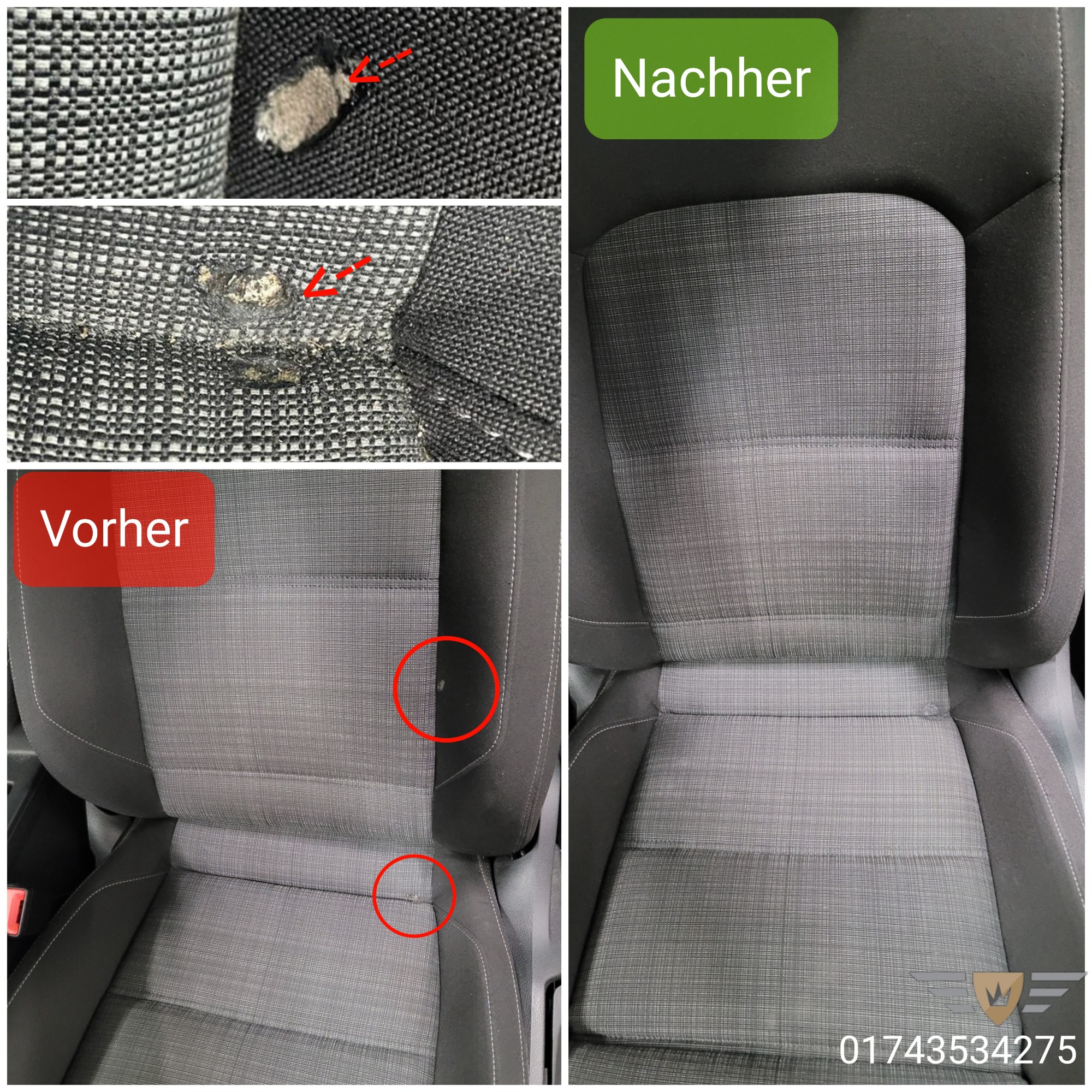 Reparaturen von Brandlöchern und Sitzwangen an PKW-Stoffsitzen