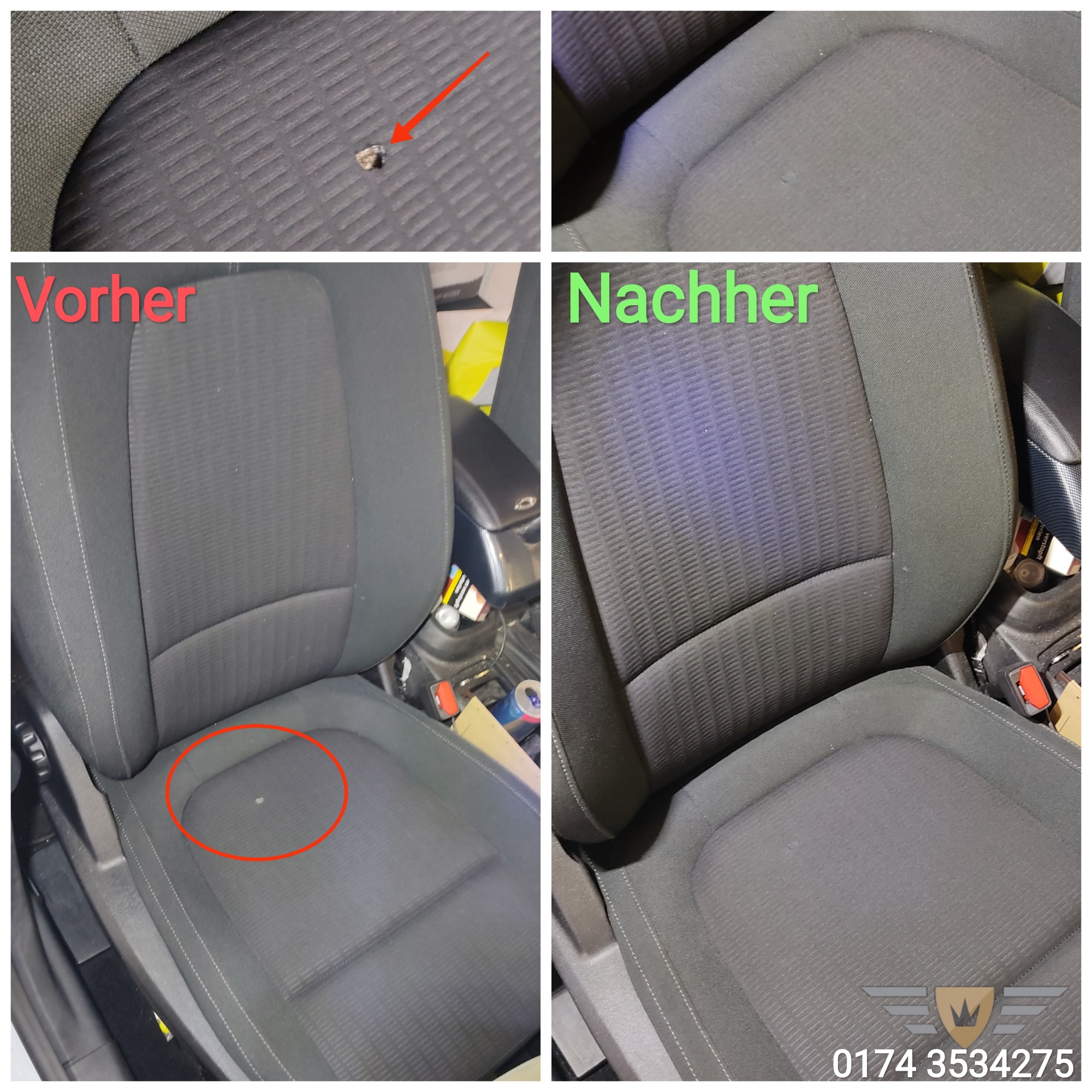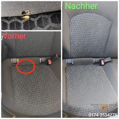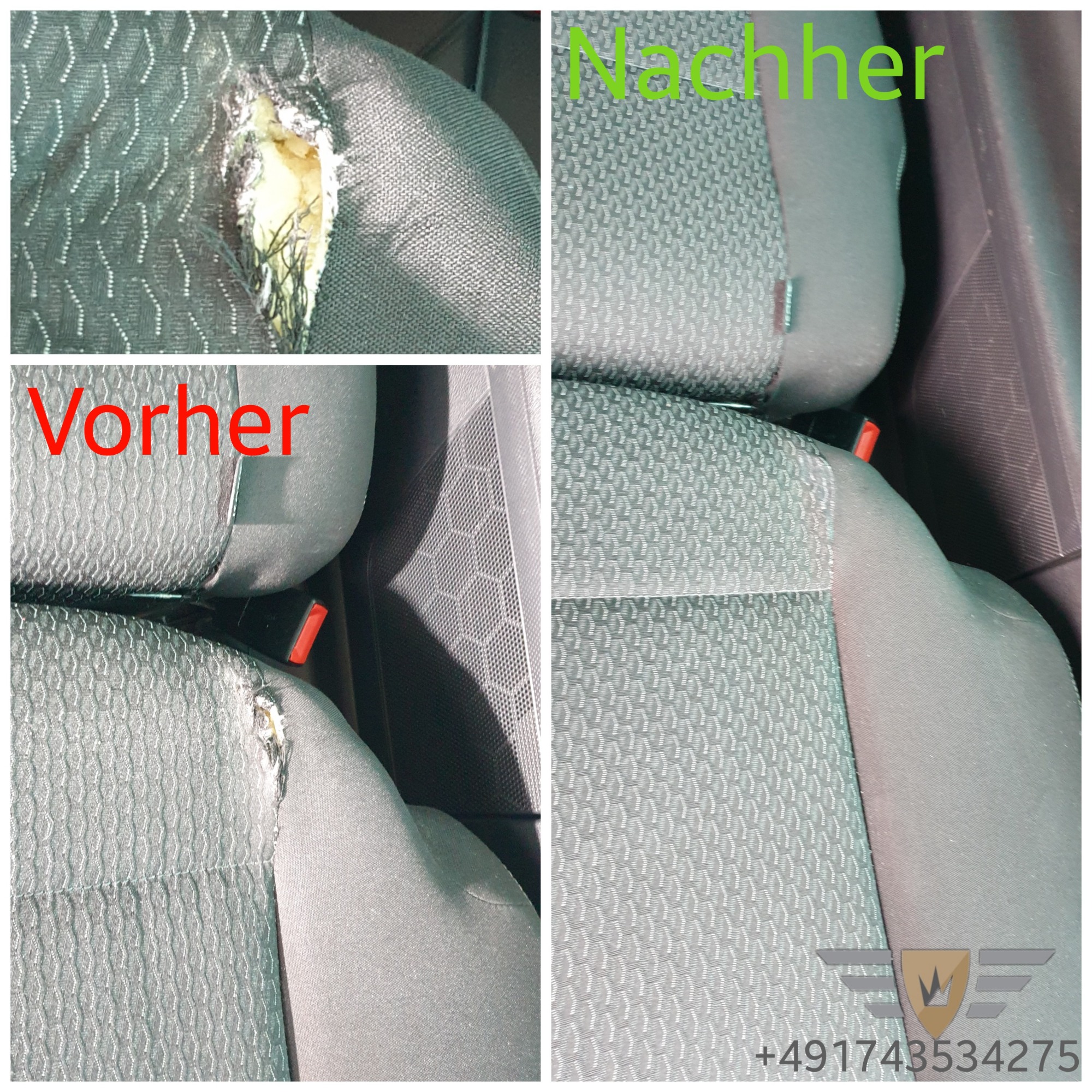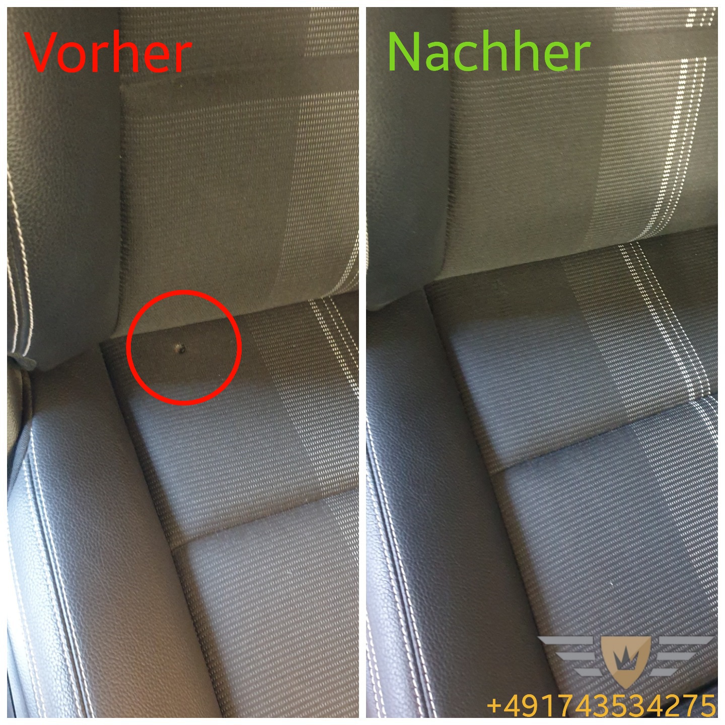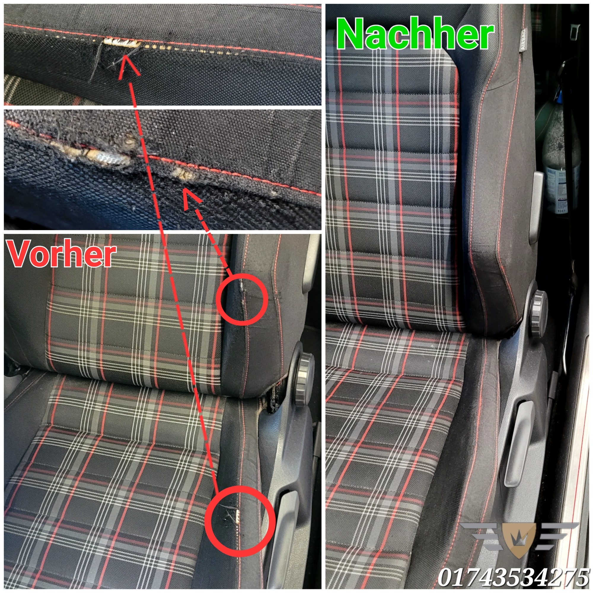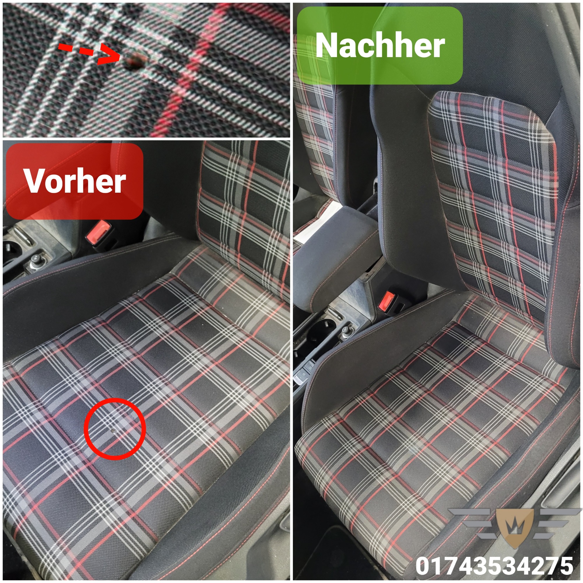 Reparaturen von Brandlöchern und Sitzwangen an PKW-Stoffsitzen