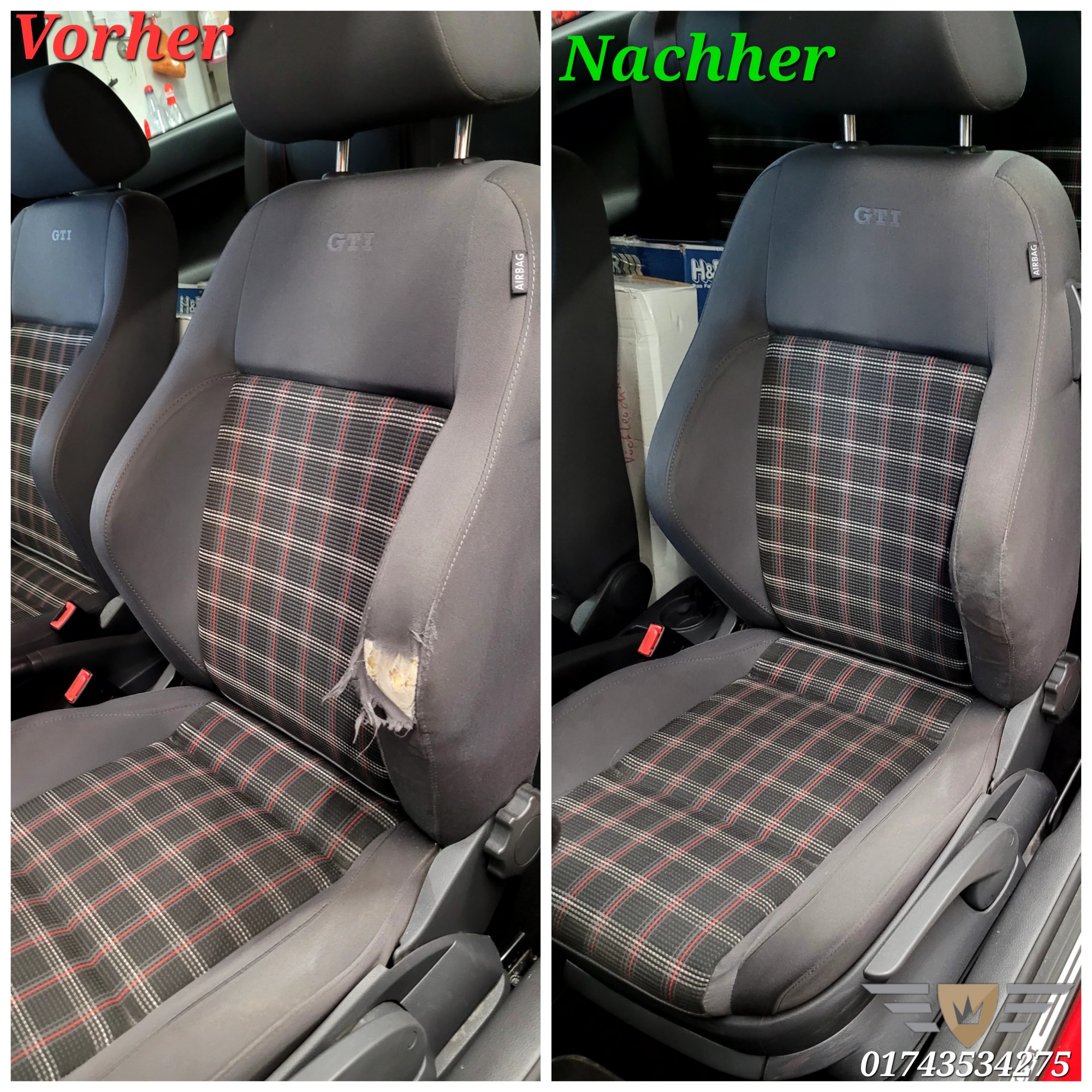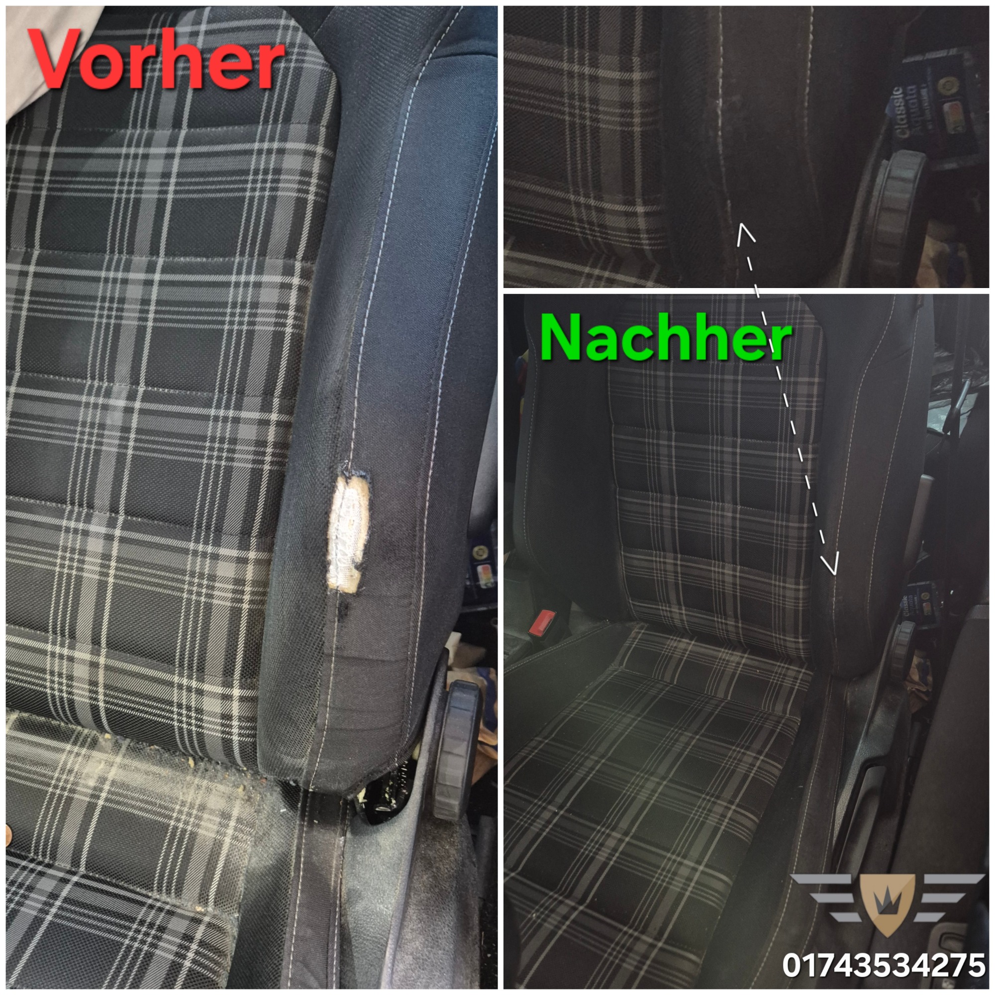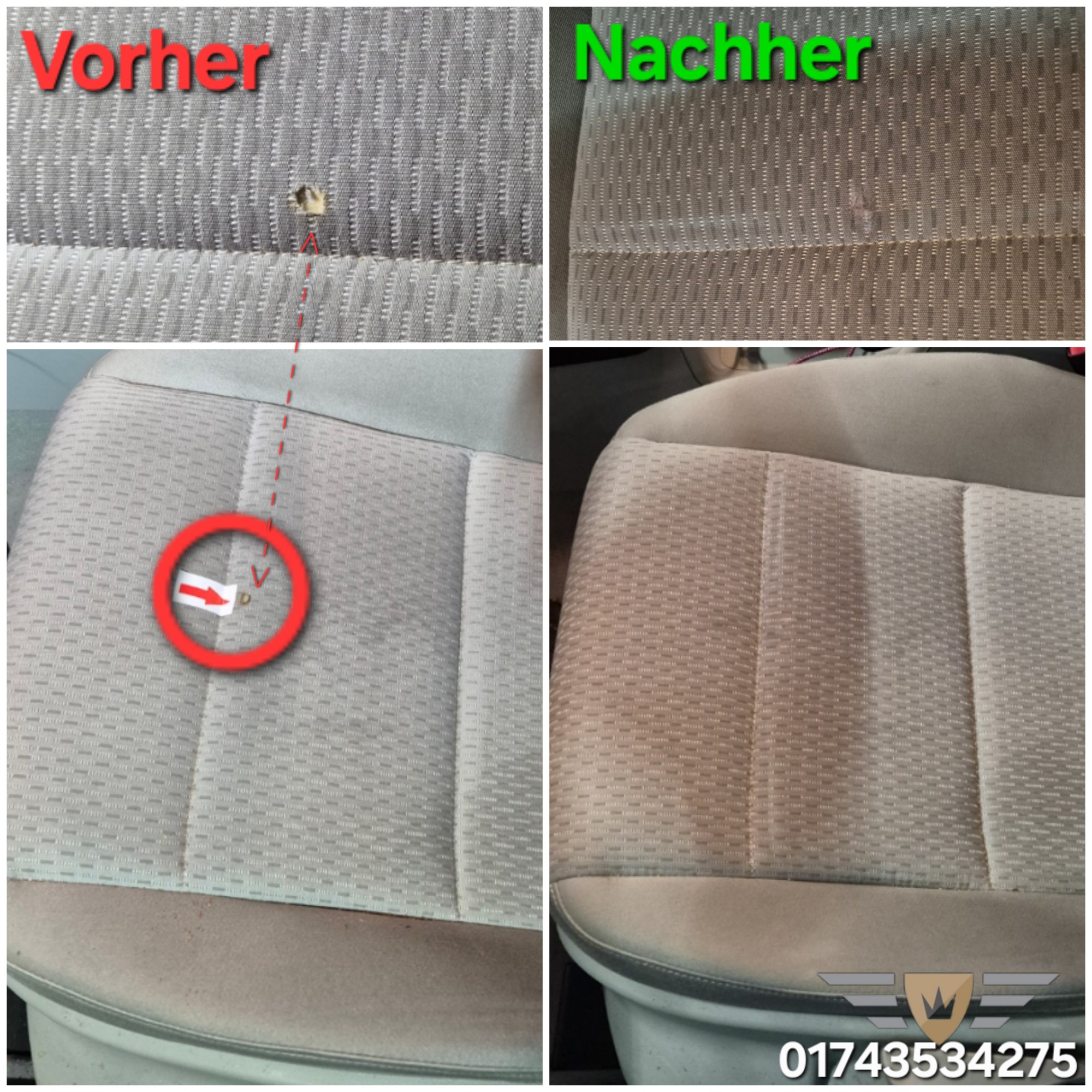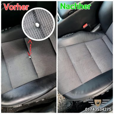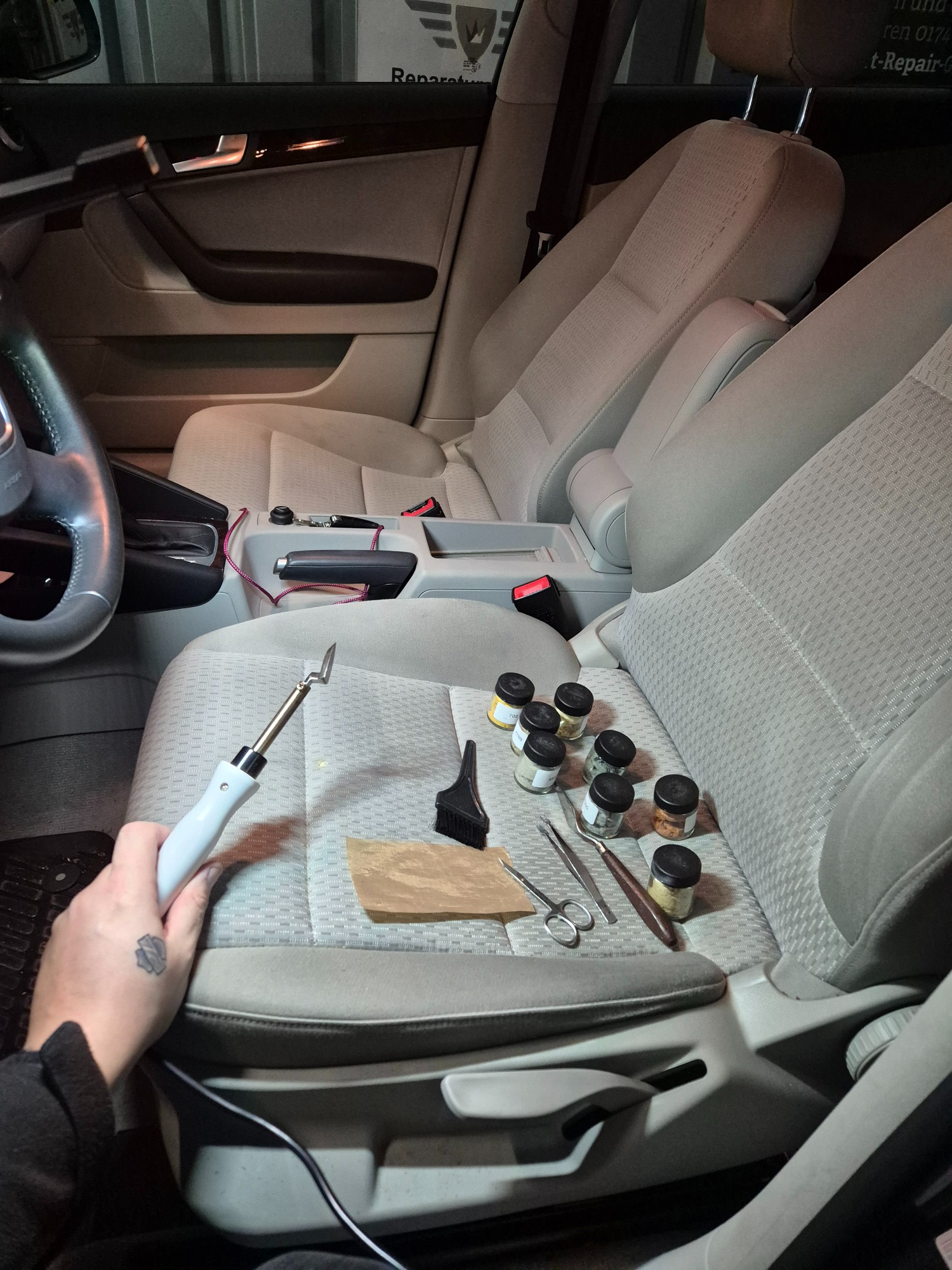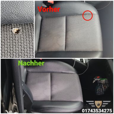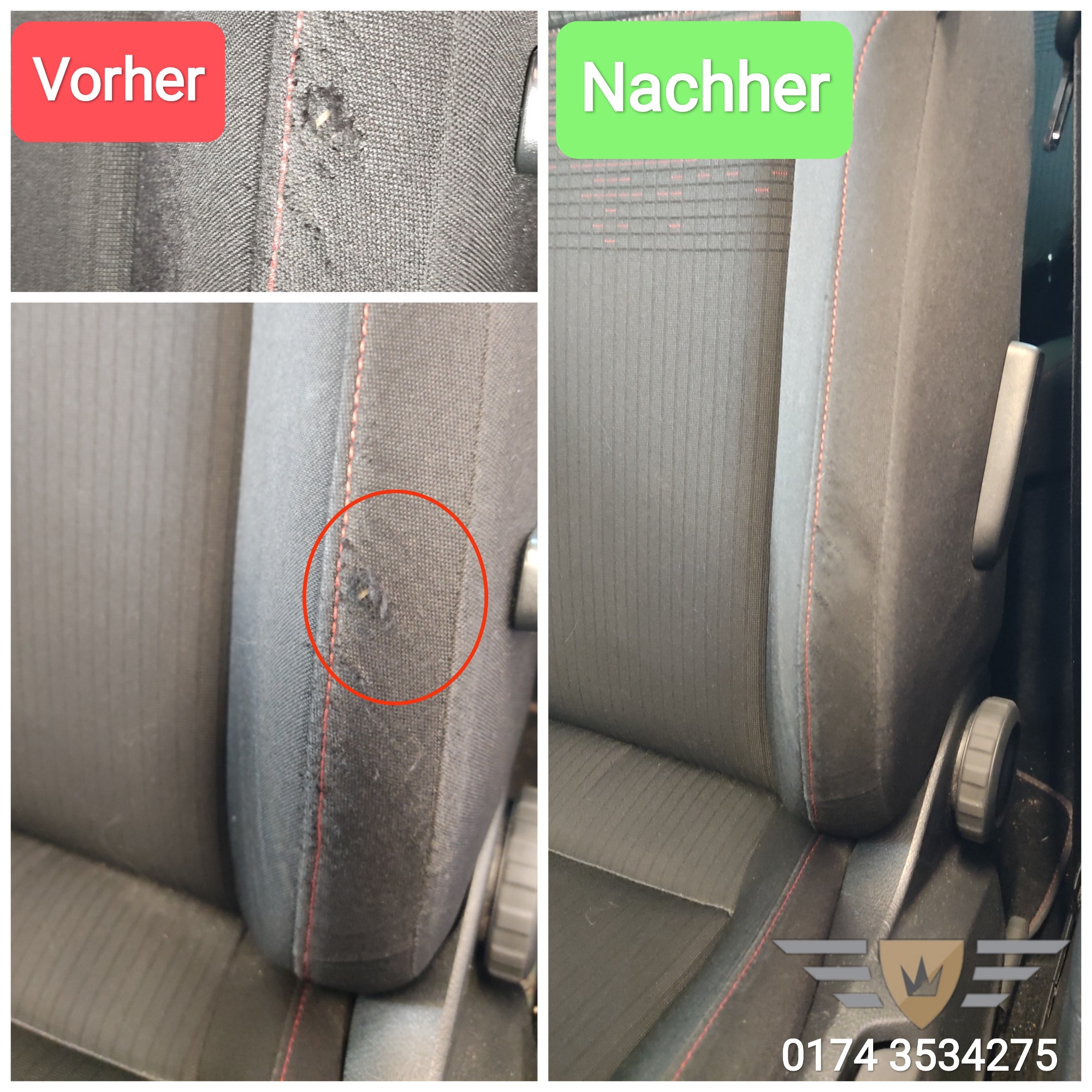Reparaturen von Brandlöchern und Sitzwangen an PKW-Stoffsitzen