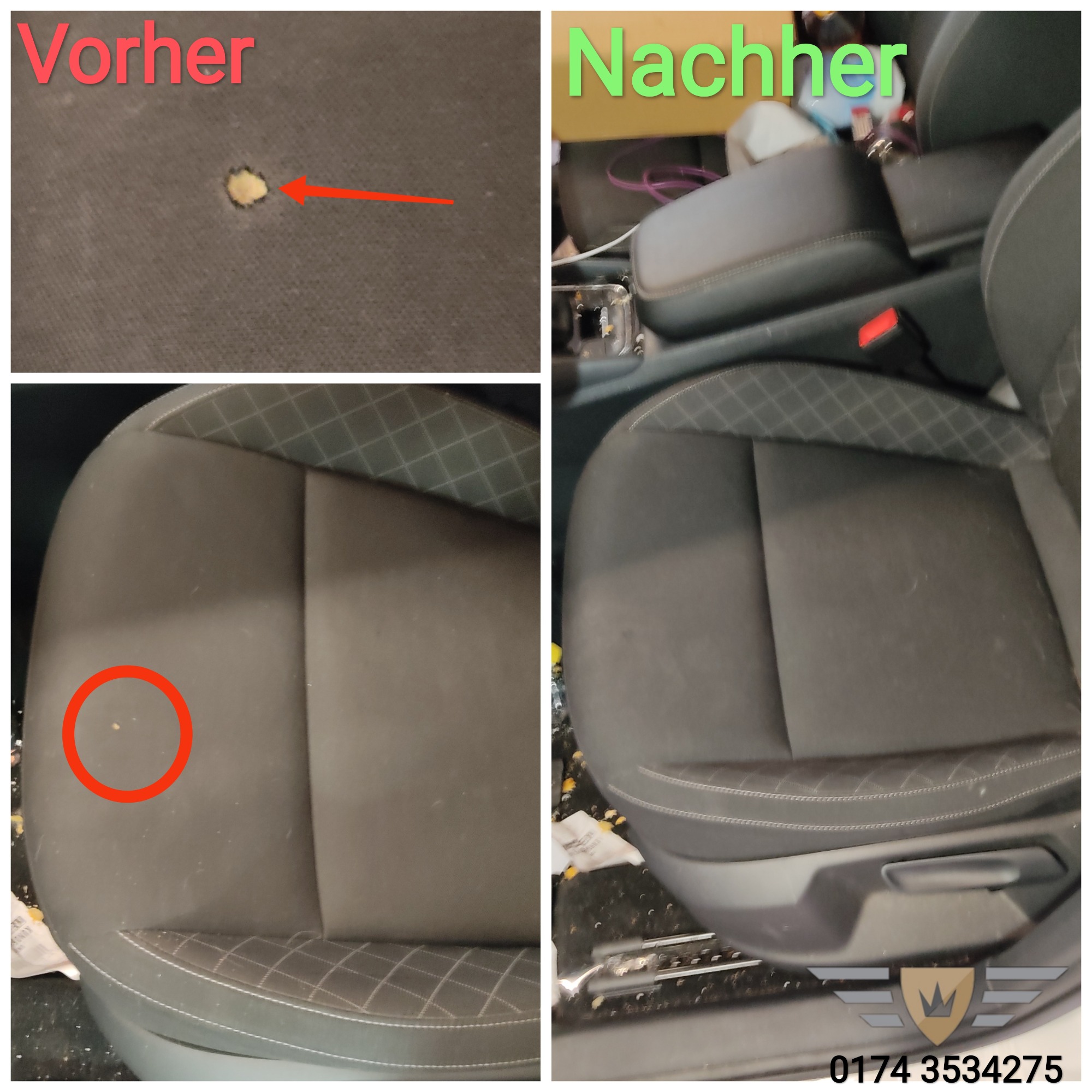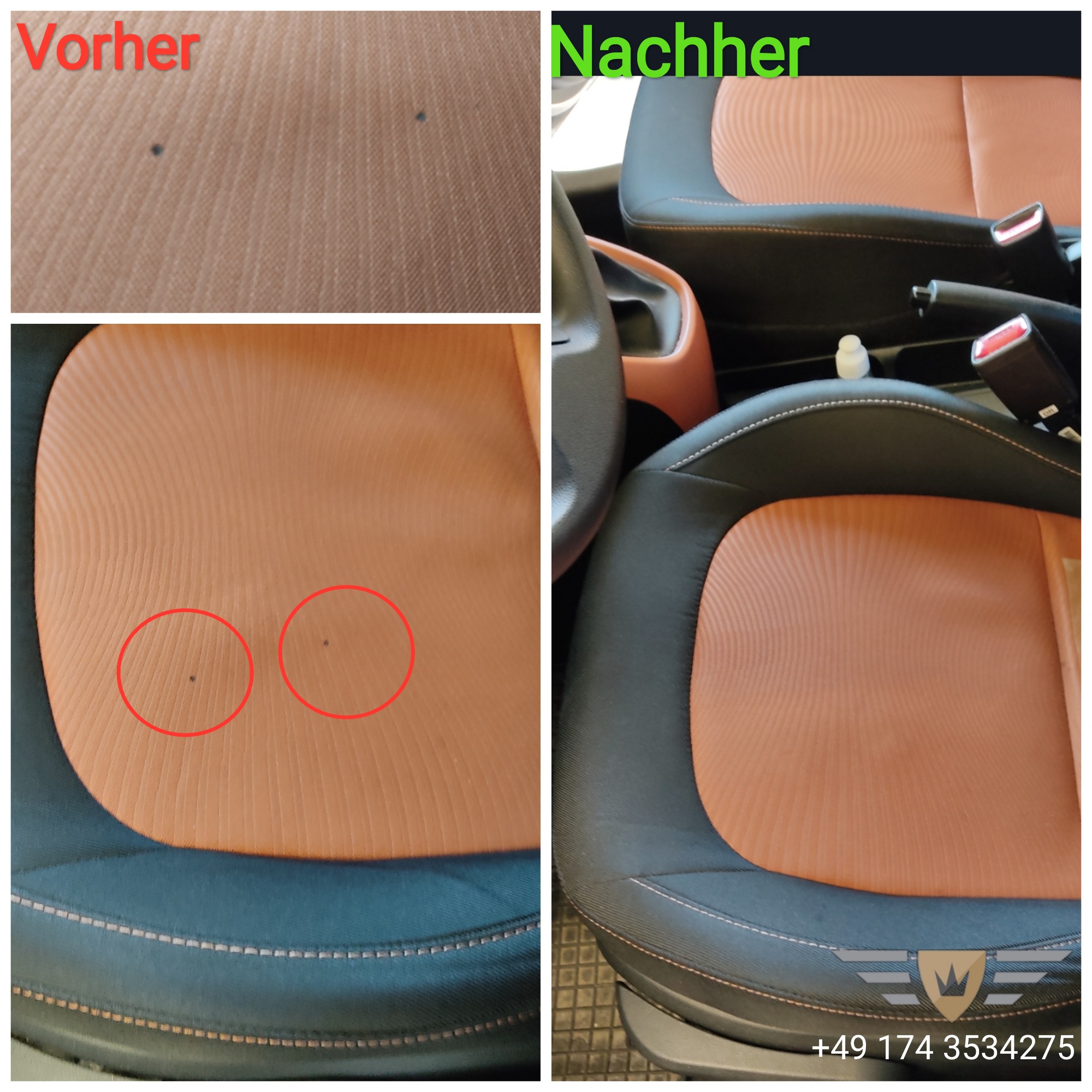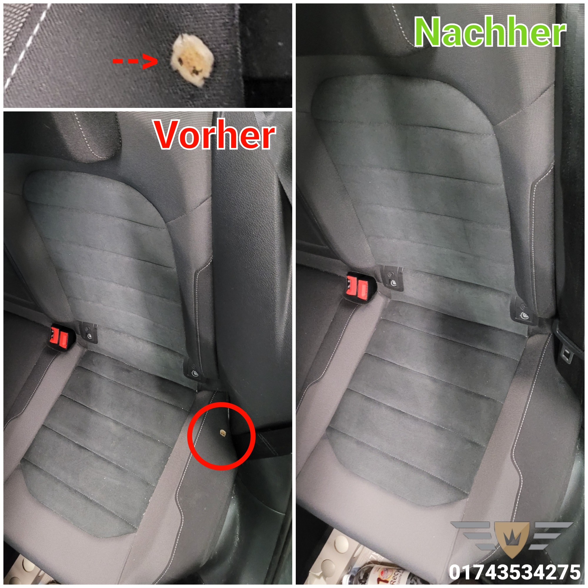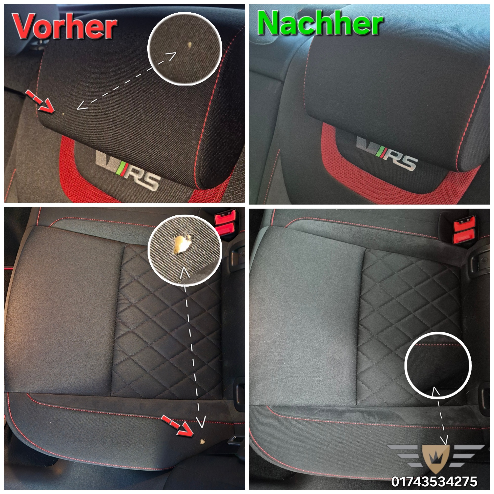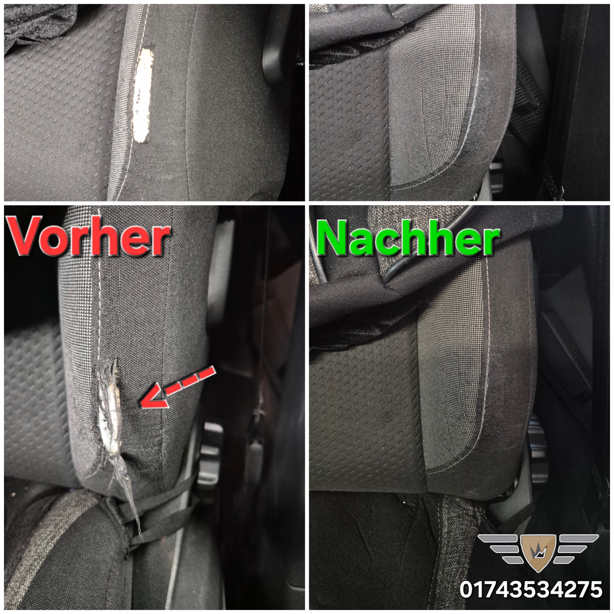 Reparaturen von Brandlöchern und Sitzwangen an PKW-Stoffsitzen