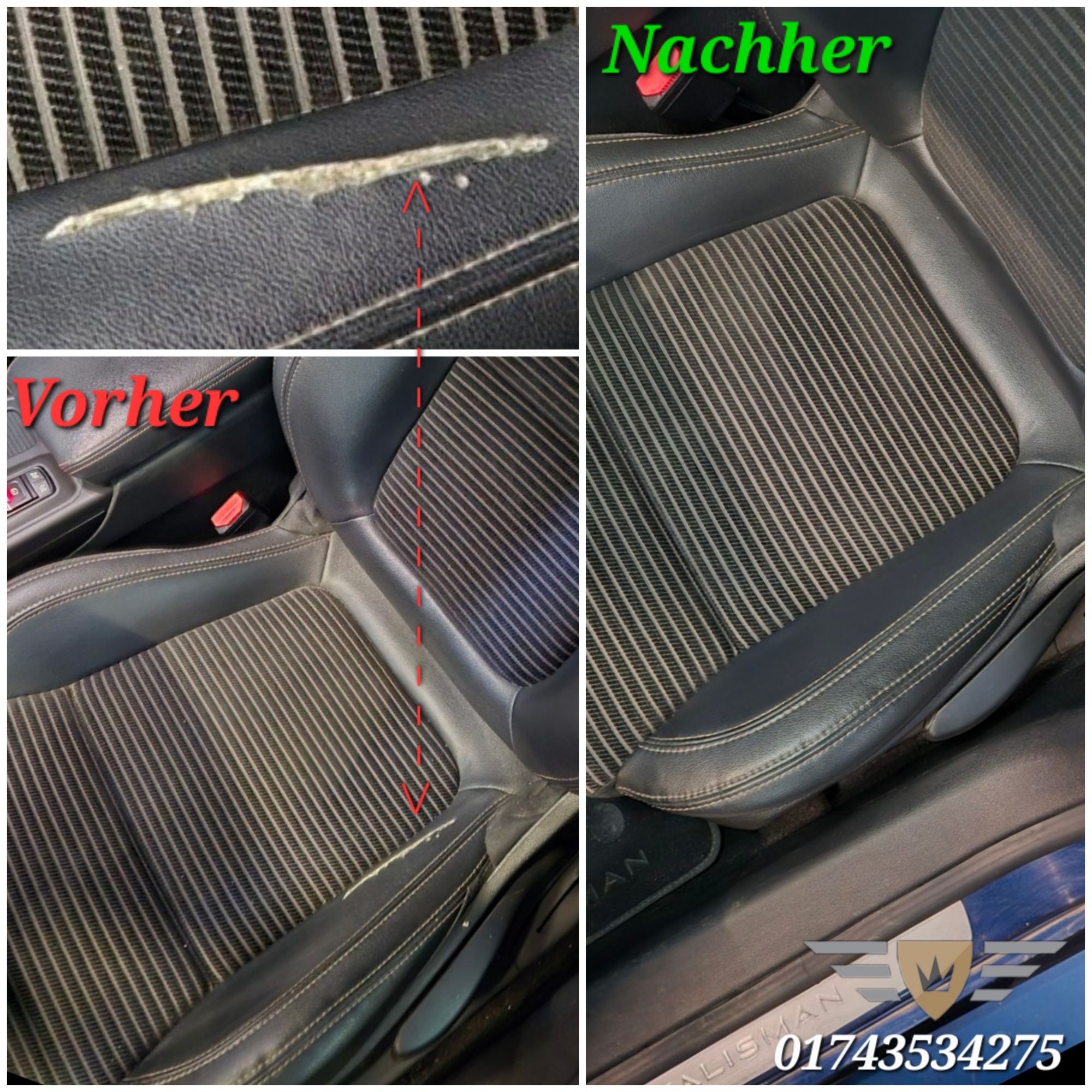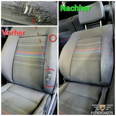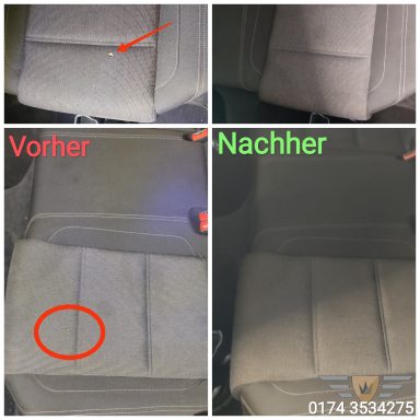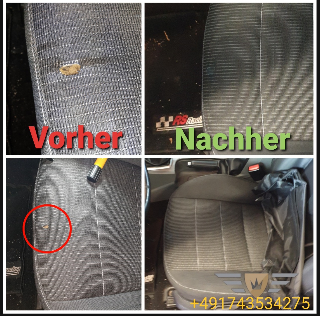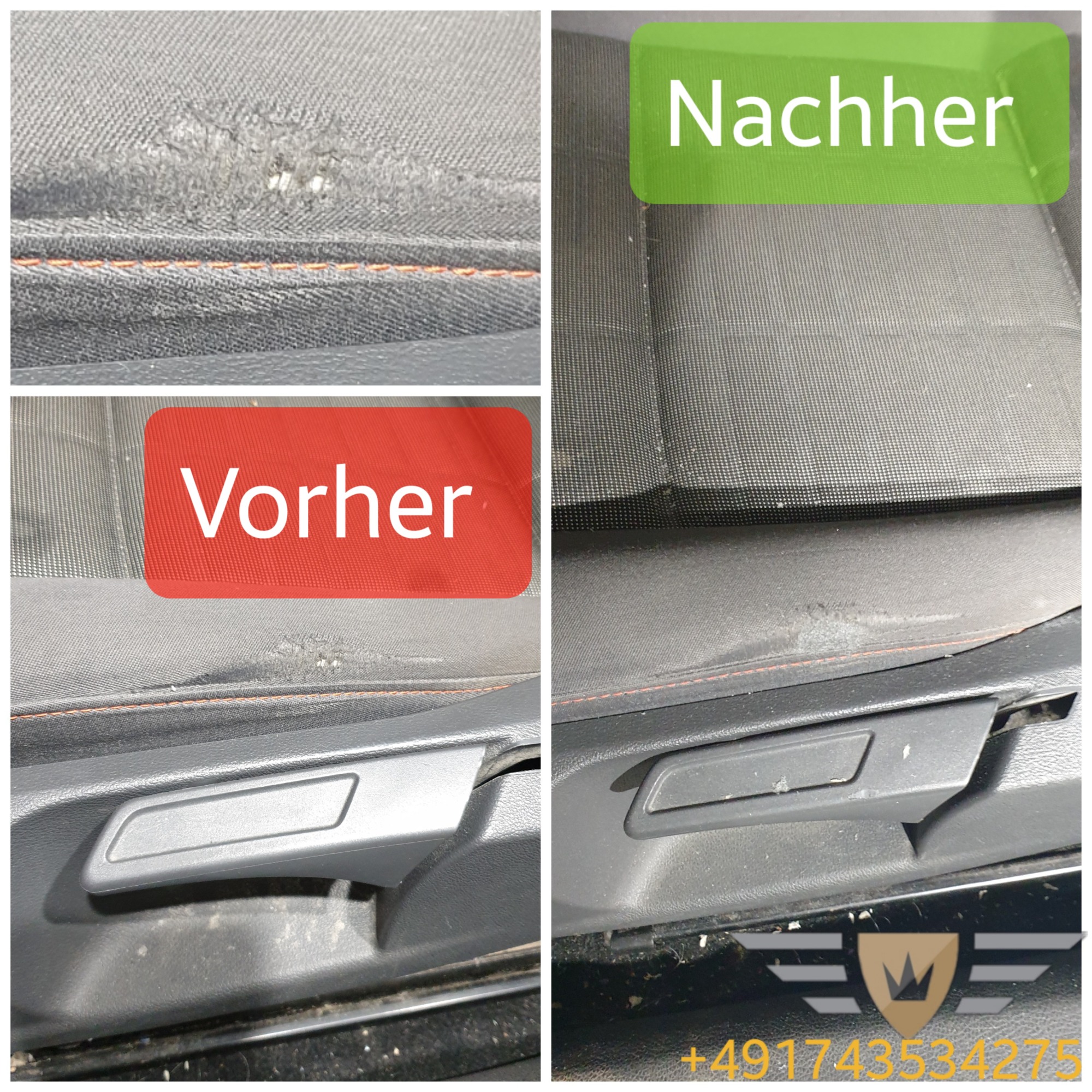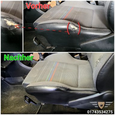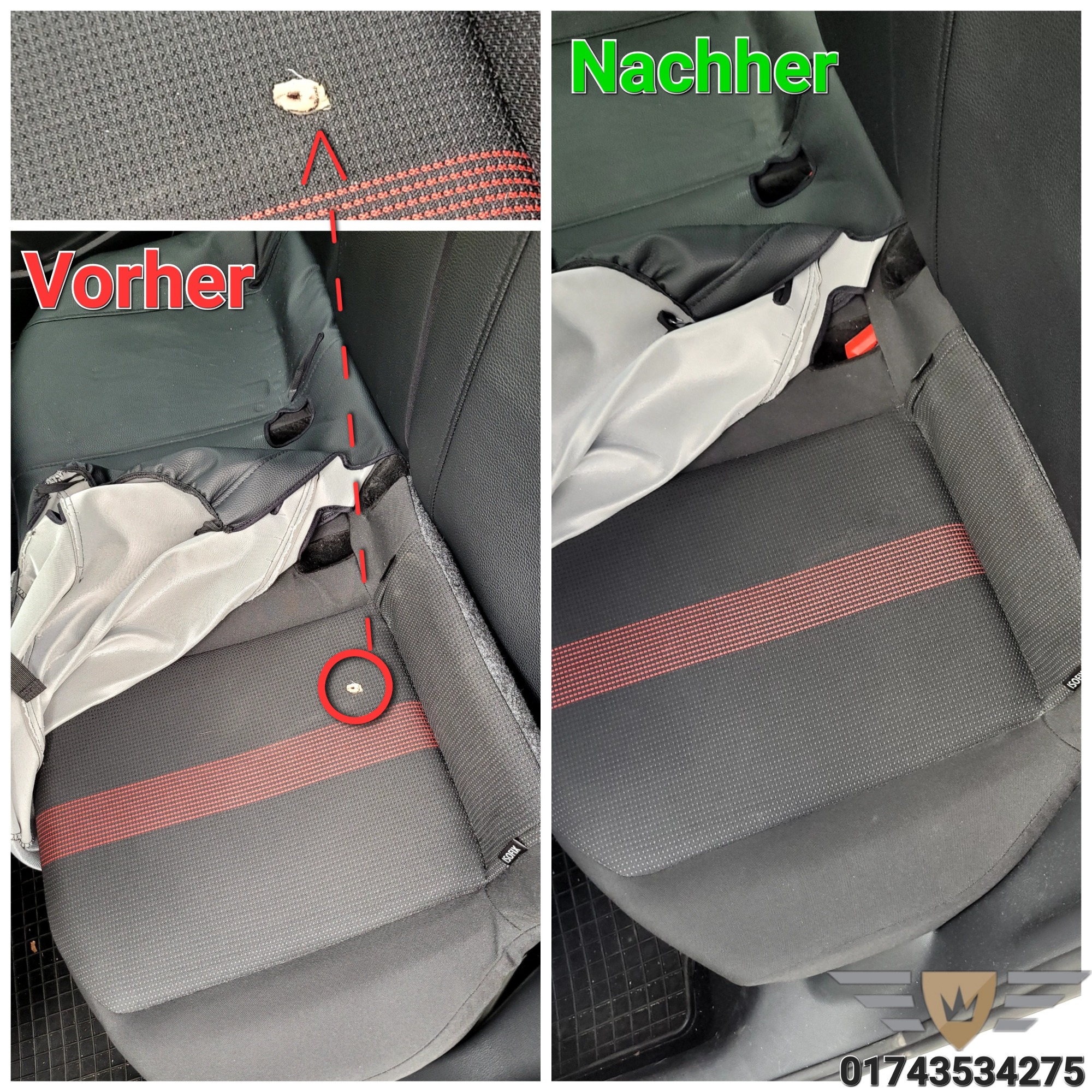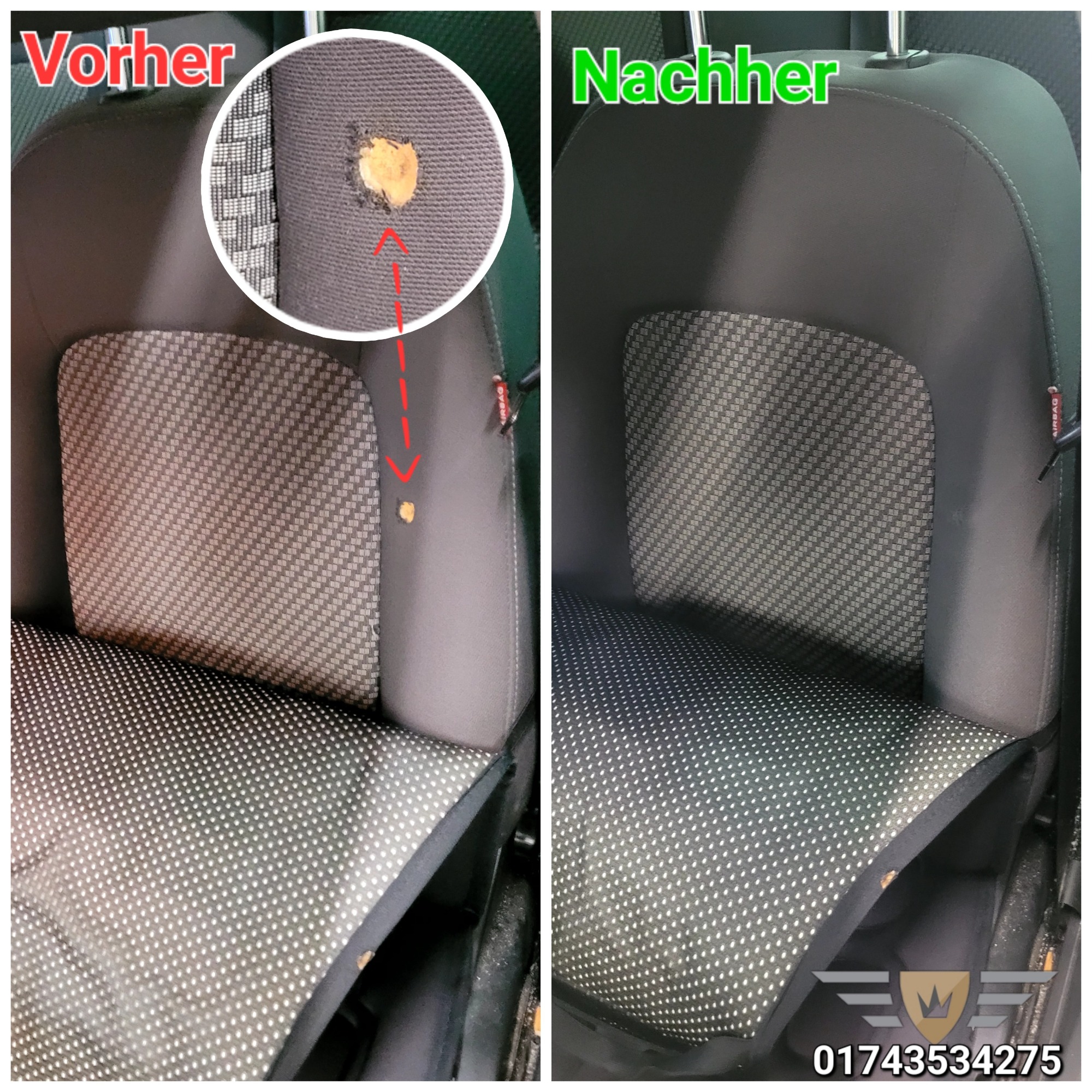 Reparaturen von Brandlöchern und Sitzwangen an PKW-Stoffsitzen