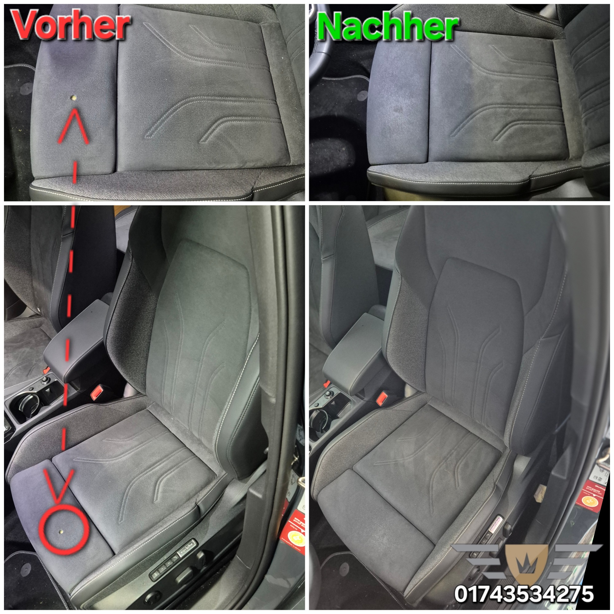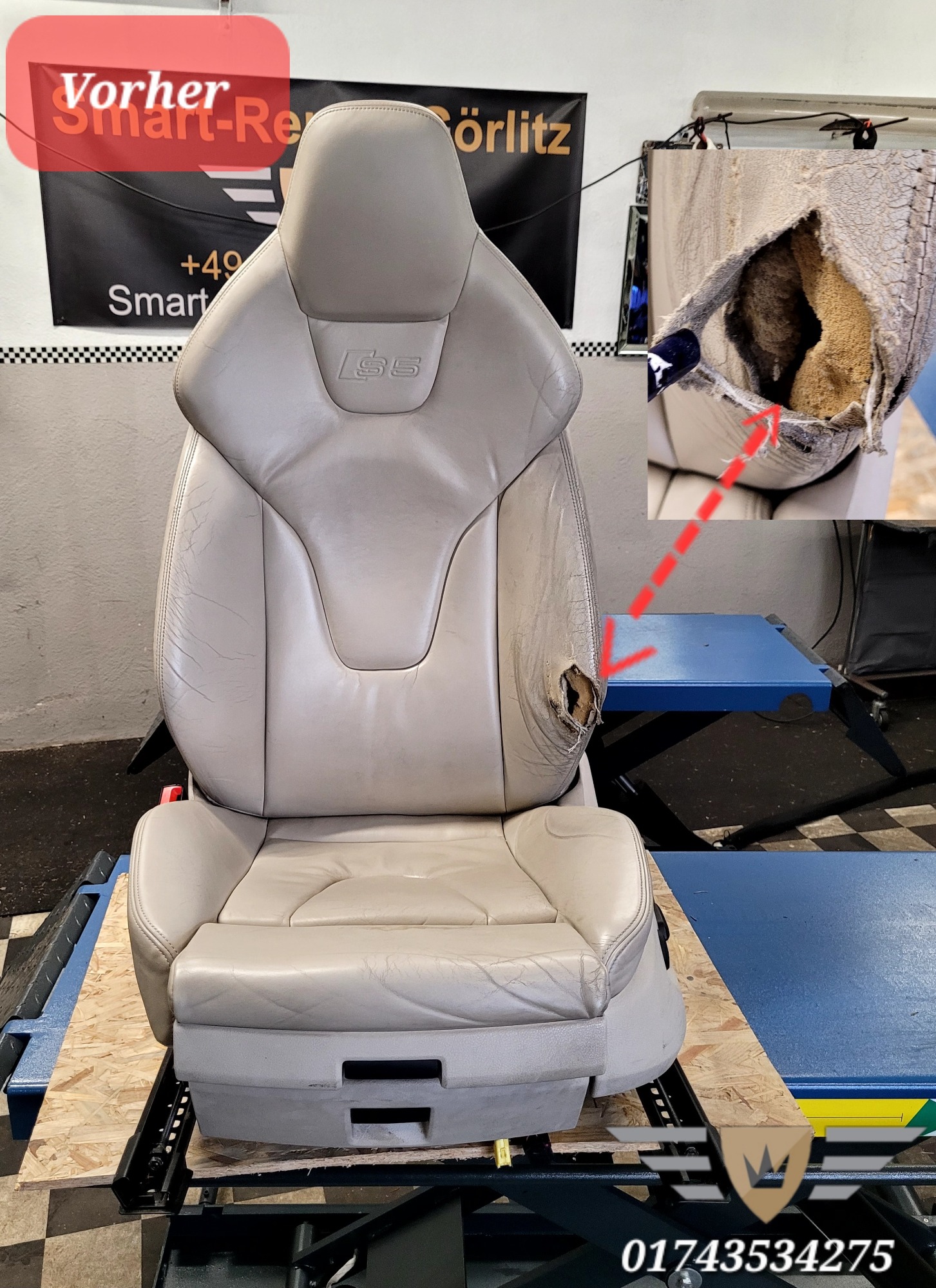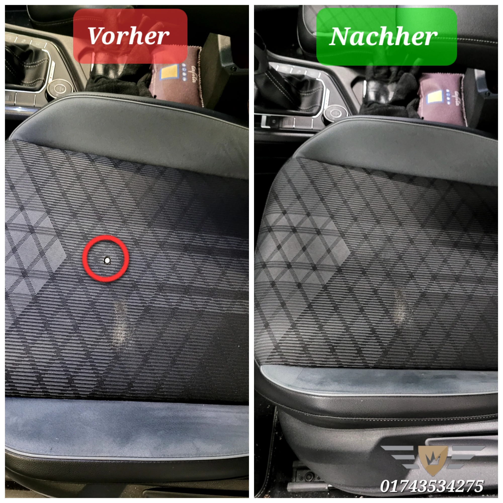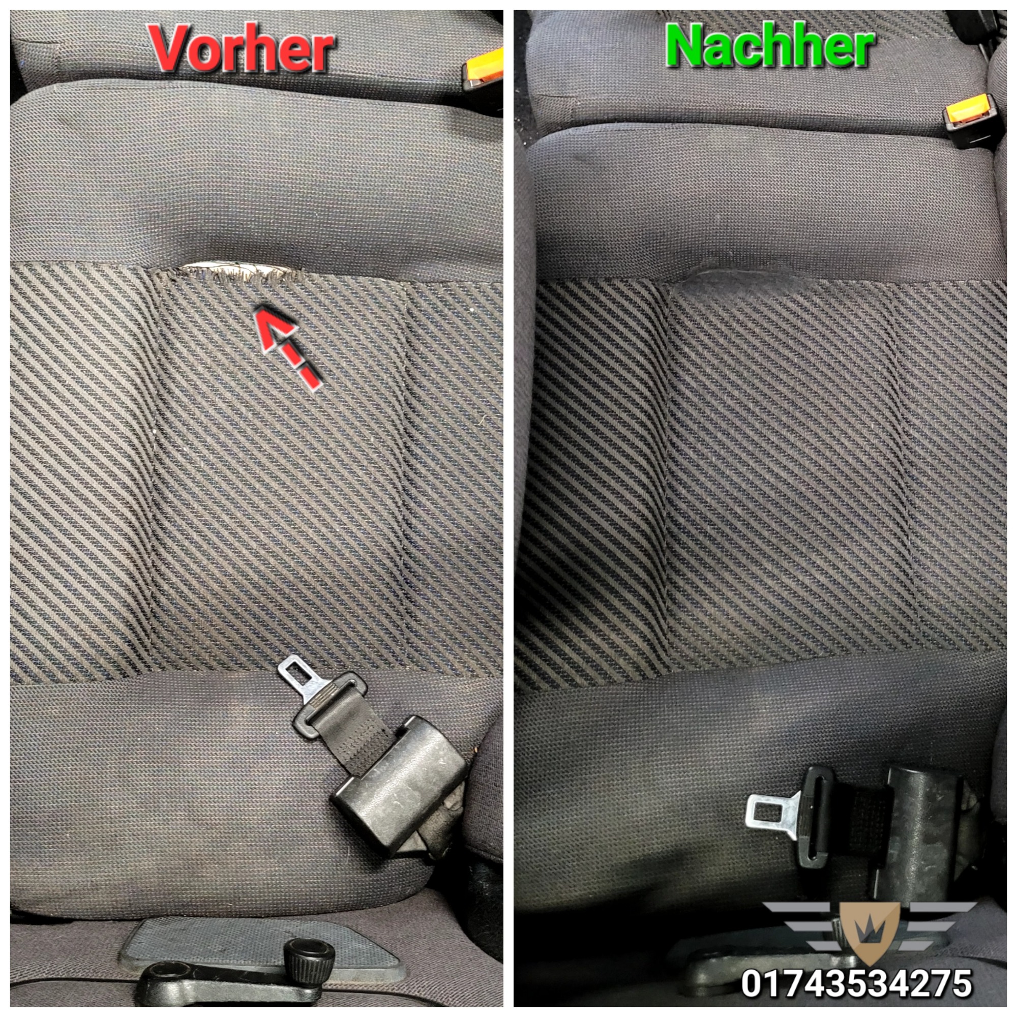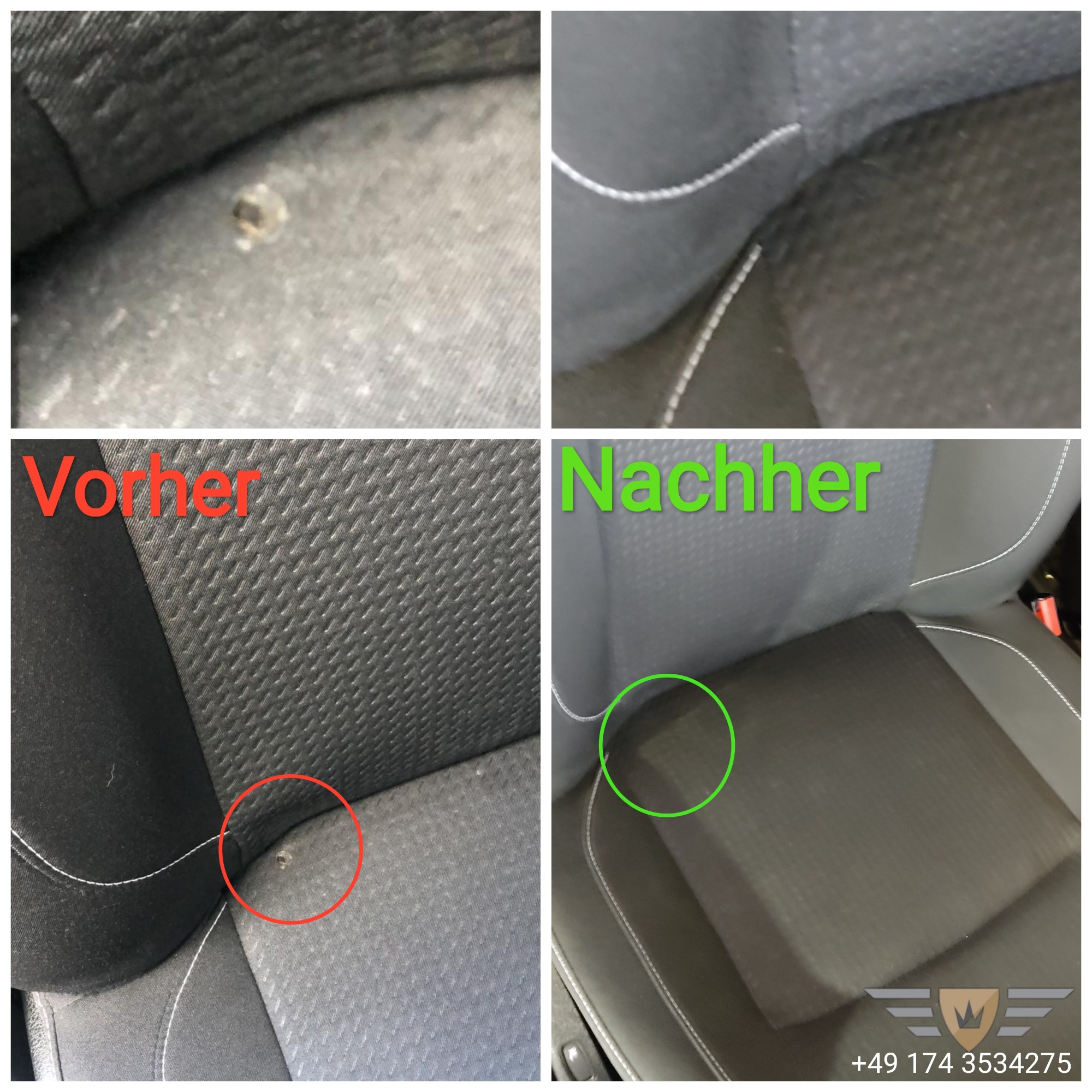 Reparaturen von Brandlöchern und Sitzwangen an PKW-Stoffsitzen